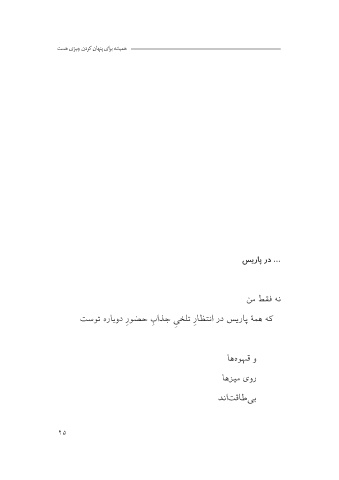 ی رک ا یارب ه م سیراپ رد ... نم طقف هن تسوت هرابود روضح باذج یخلت راظتنا رد سیراپ ۀمه هک ِ ِ ِ ِ اه هوهق و اهزیم یور دنا تقاط یب 25