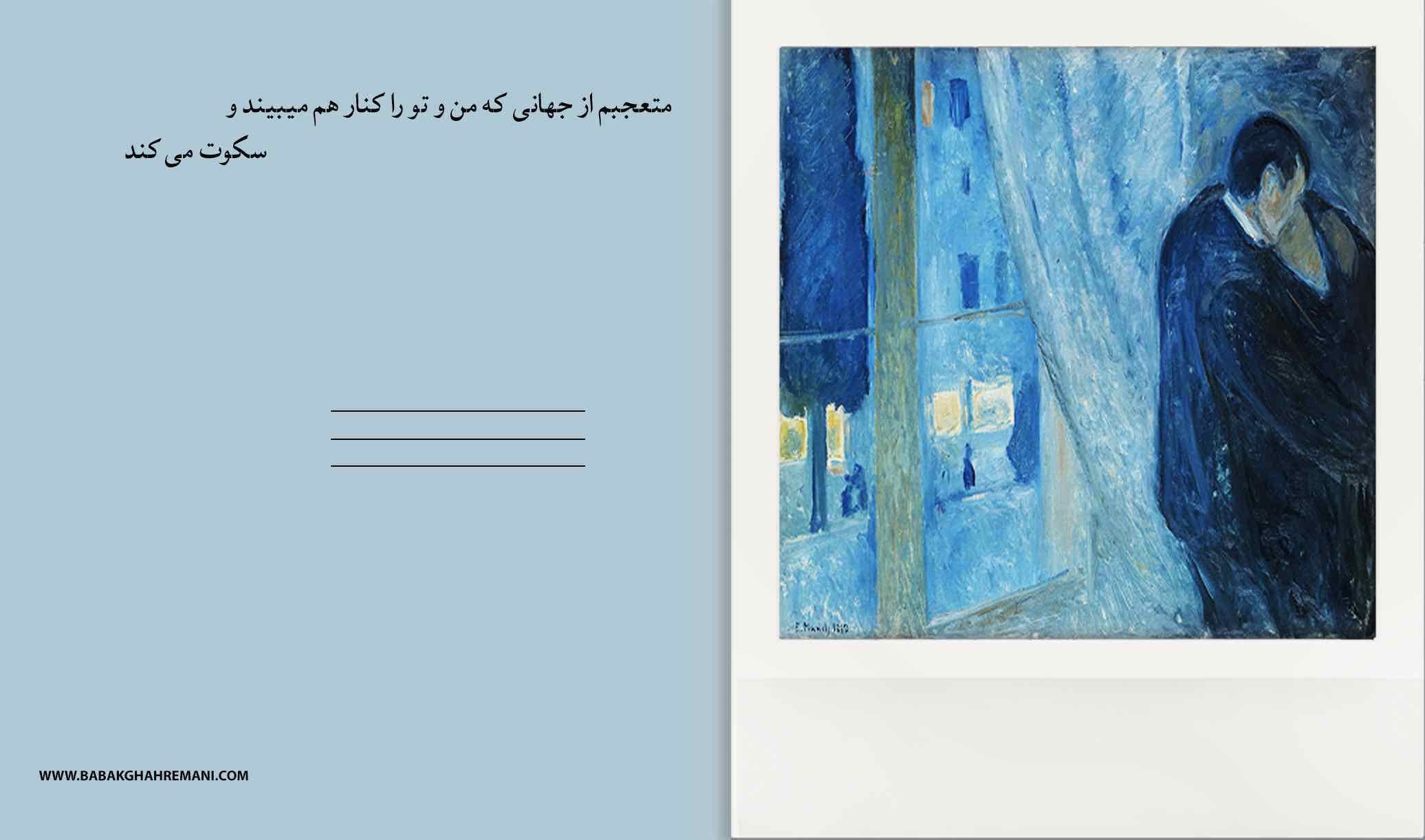 ایده تلفیق نقاشیهای بزرگان تاریخ هنر و شعرهای من، که به دلایل زیادی از جمله خلق اثر هنری توسط دوستان و همراهان و بزرگوارن، در همان ابتدای راه متوقف. تاثیرءذیری مدیوهای مختلف در آینه تلفیق هنرمندان ایرانی و خارجی، ساختاری بود که جایگزین این ایده شد.